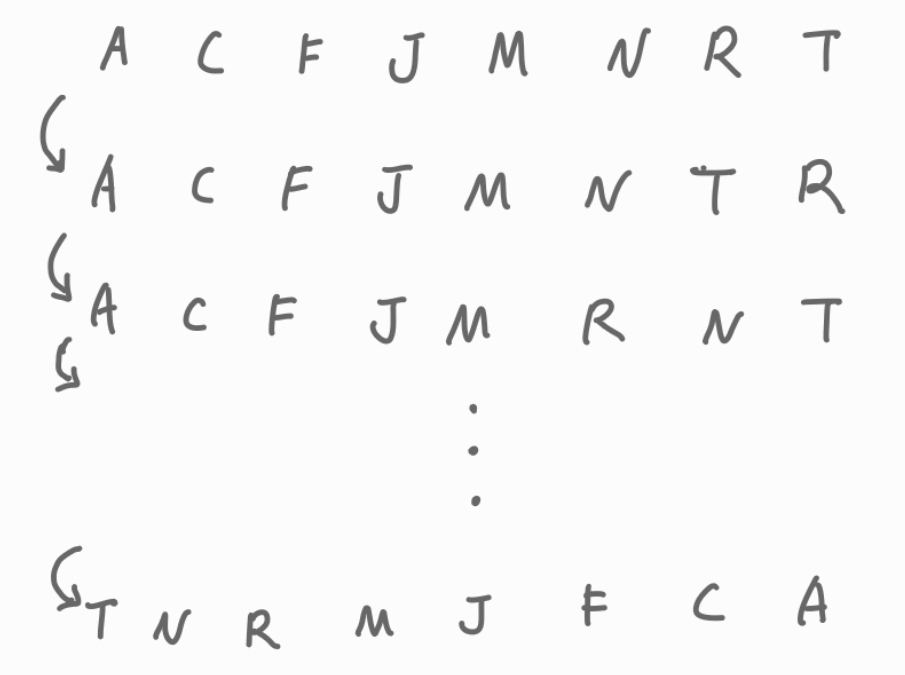 먼저, ACFJMNRT 의 정렬해서 나올 수 있는 경우의 수를 next_permutaion 함수를 활용 하였다.