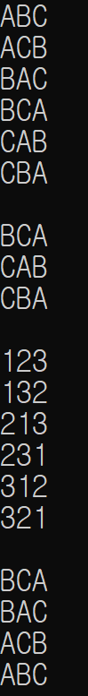 다시 말해, BCA 에서 permutation 을 수행한다면 ABC부터 정렬되는게 아니라 BCA에서부터 CBA까지 정렬된다는