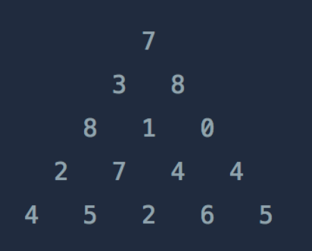 [[7], [3, 8], [8, 1, 0], [2, 7, 4, 4], [4, 5, 2, 6, 5]] 30