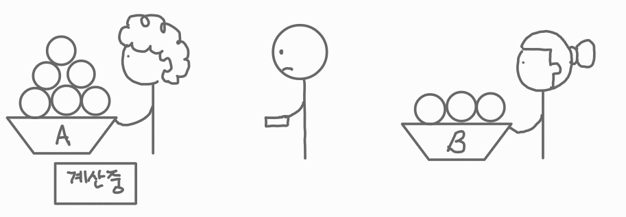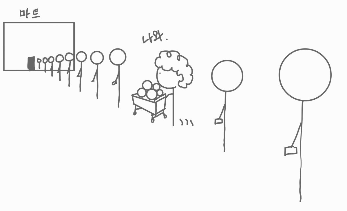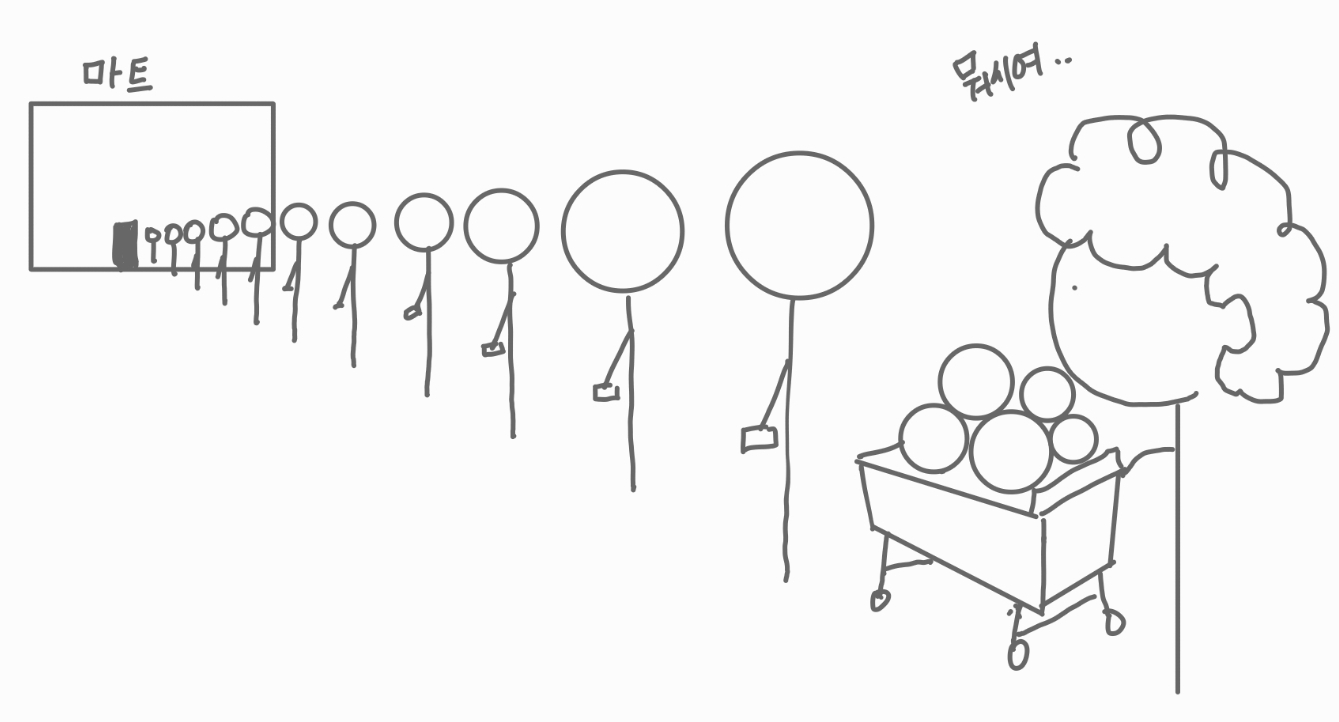 자! 지금 여러분이 마트에 갔다고 상상해보세요~ 그리고 마트에는 계산대가 하나밖에 없어요.
