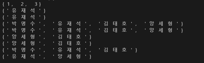 print(java.union(python)) #{'양세형', '박명수', '김태호', '유재석'}