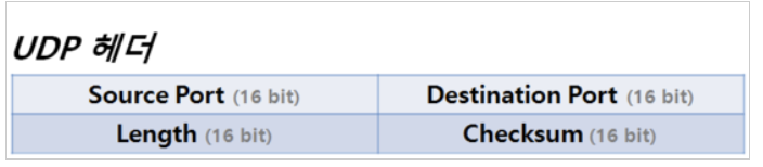 | 데이터의 길이(Length) | 16bit | UDP 헤더와 데이터의 총 길이 |