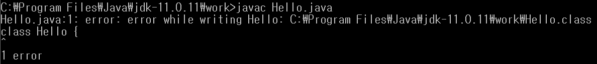 콘솔 창에 javac로 컴파일을 할 때, 코드에는 문제가 없는데, error: error while writing [클래스 이름]오류가 발생하는 경우가 있다.