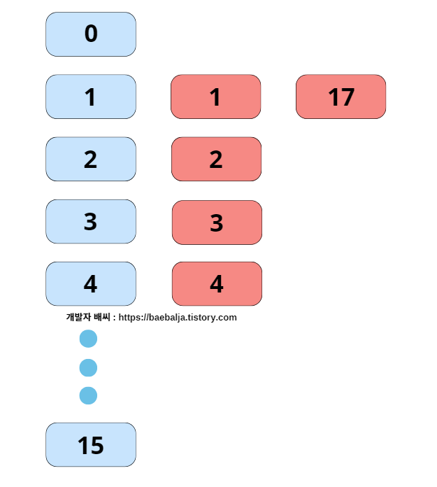 이번에는 코드를 조금 수정해서 '17'의 숫자를 삽입해봤다. [예제 1] 에서 나온 원리대로 생각해보면 [예제 2] 또한 오름차순으로 정렬이 되어야한다고 생각했다. 하지만 예상과 달리 17이라는 값은 애매한 위치에서 출력되었다.