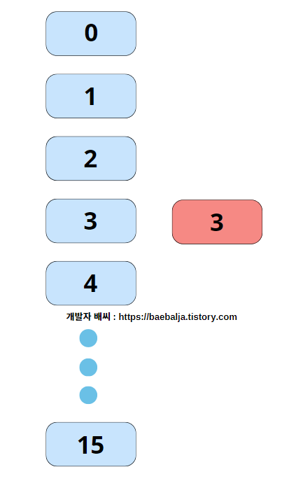 처음에 3이라는 원소를 주입하였을 경우 3%16 -> 3이라는 값이 도출되므로 초기에는 위와 같이 구조화되어있을 것이다.